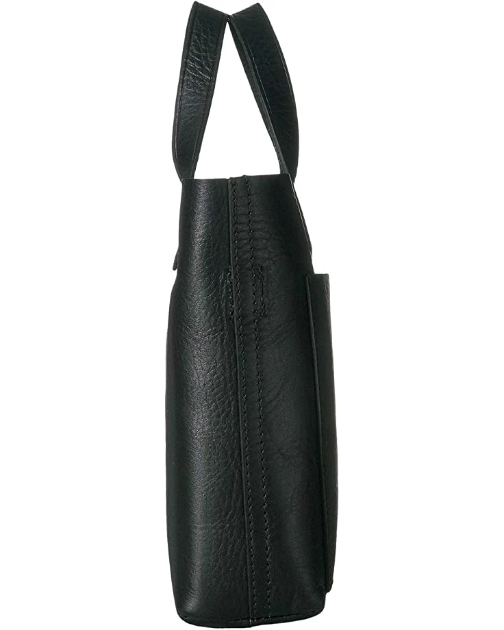 I’ve been using very small purses for years, attempting to prevent the temptation to carry too many things. This bag is perfect. Small zipped pocket inside for lip balm, keys, hair tie. Interior space for my wallet, pens, nail file. Outside pocket just right for a cell phone. AND enough extra space when I need to carry sunglasses or shopping bags. The leather is soft and luxurious and I love the cross-body and short handle options. Highly recommend.