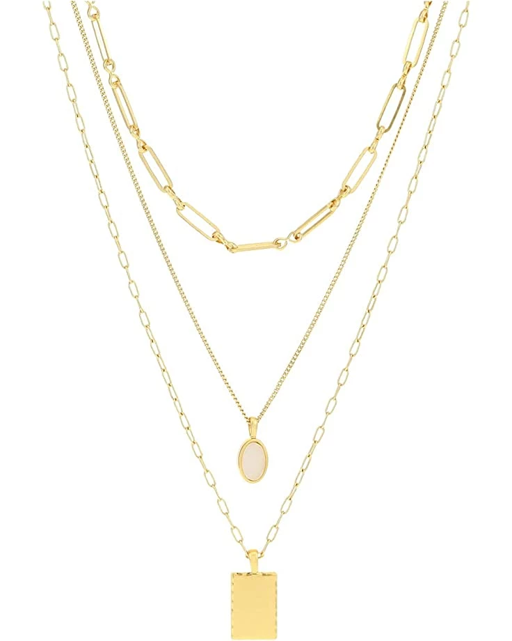 - Three layered necklace crafted from gold tone metals.